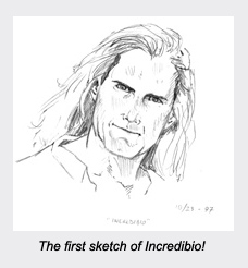 Well, Gabe thought that name was funny, so he did a quick sketch of some goofy guy in a t-shirt and a helicopter pilot's helmet standing at a podium to make an announcement of our name change. His thinking was to have this character be the figurehead of our comic company, but following the disappointing interest we generated for Lords #1, our foray into self-publishing came to an abrupt end. And it's a good thing we never changed the company name to Joe Comics, since JM Straczynski's imprint at Top Cow was later called "Joe's Comics" -- and we no doubt would have been squashed again. Our company was officially defunct, but our character lived on.